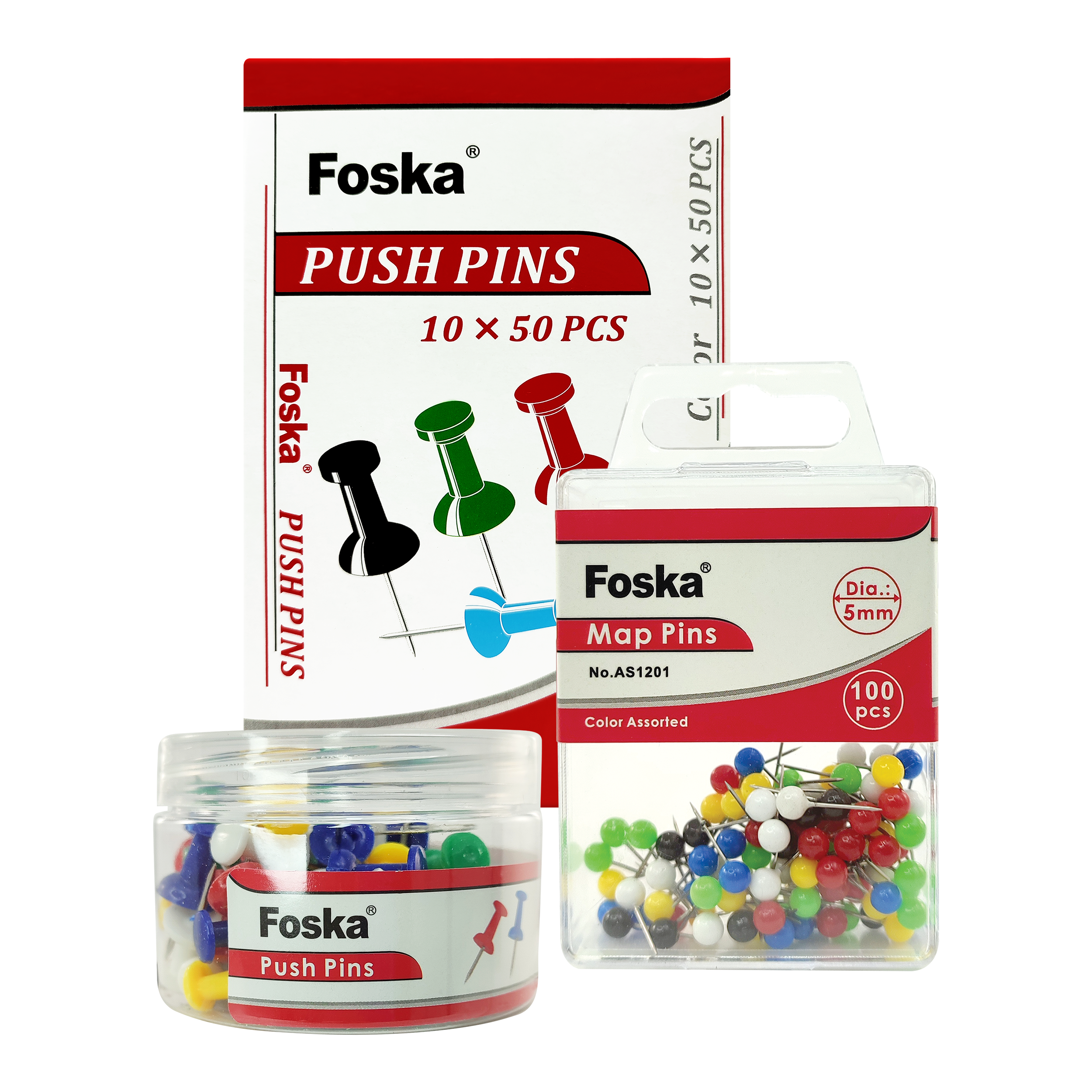 ALFILERES P/MAPA `FK` PQ.C/10cj.x50pz.C/U.PINES T/BOTALON COLORES SURT.