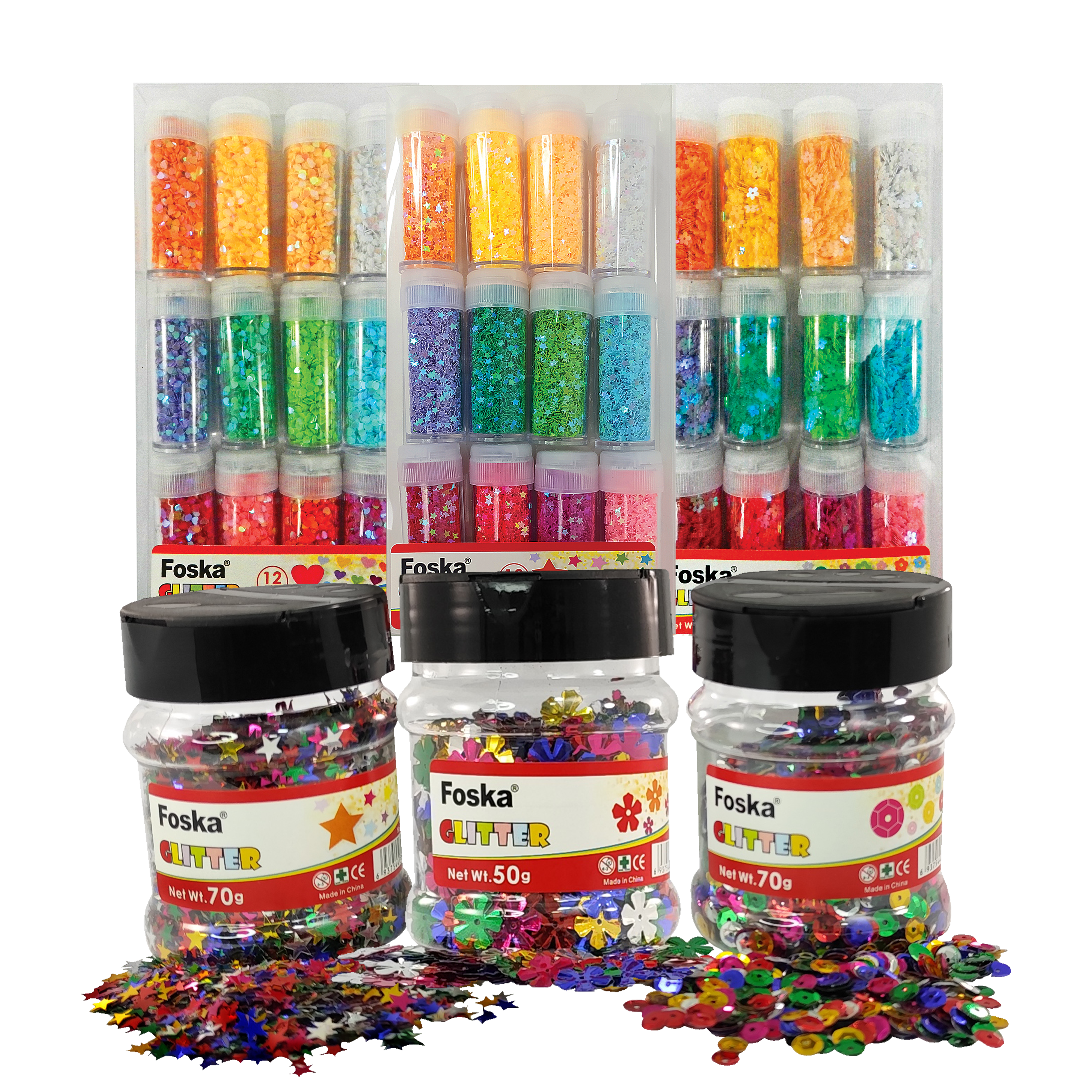 BISUTERIA LENTEJUELAS (PE) `FK` ET.12pz.x15cc.C/U.COLOR SURT.DIAM.5mm.ESTRELLAS
