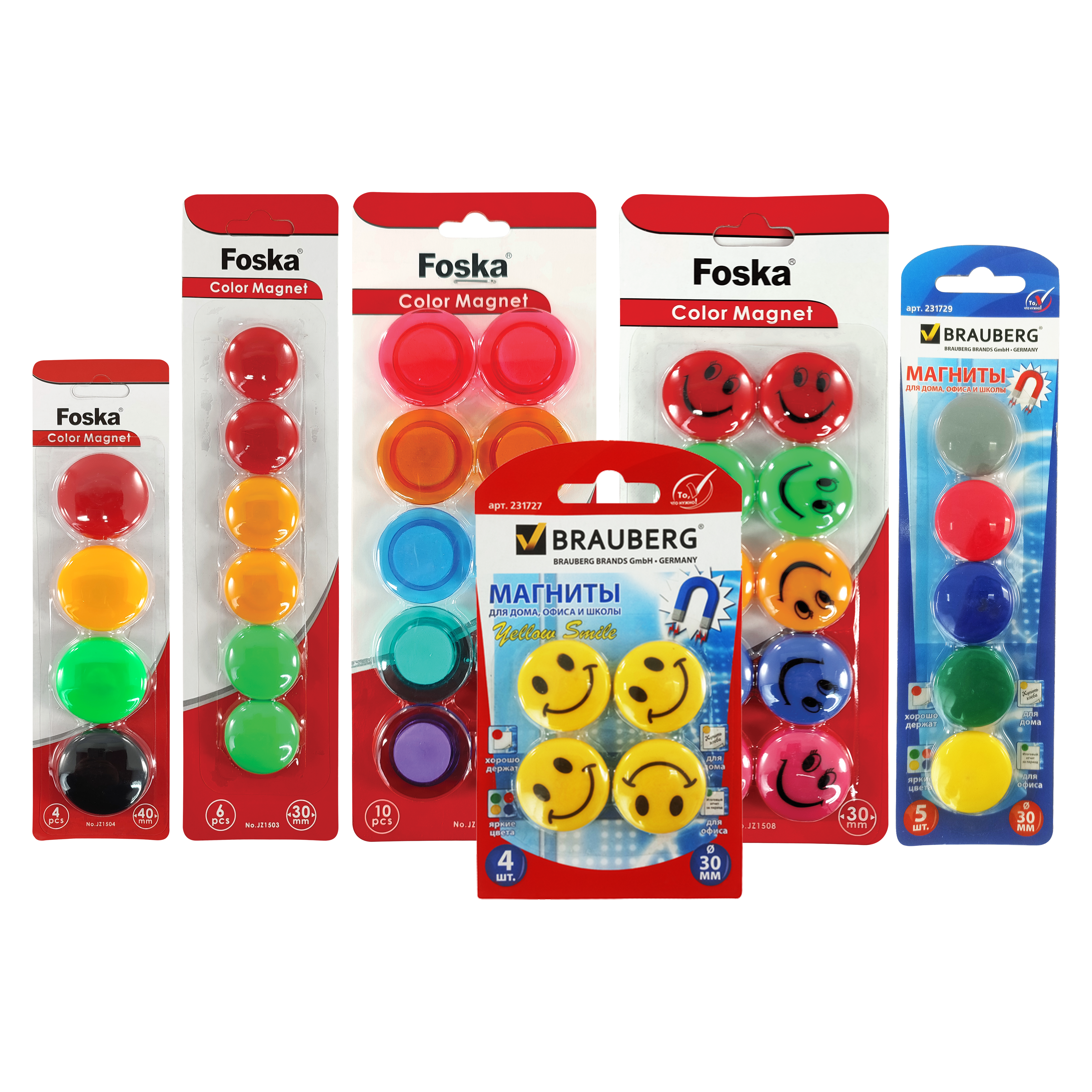 IMAN RIGIDO GDE.`FK` REDONDO 30mm.BL. 6pz.COLORES SURTIDOS