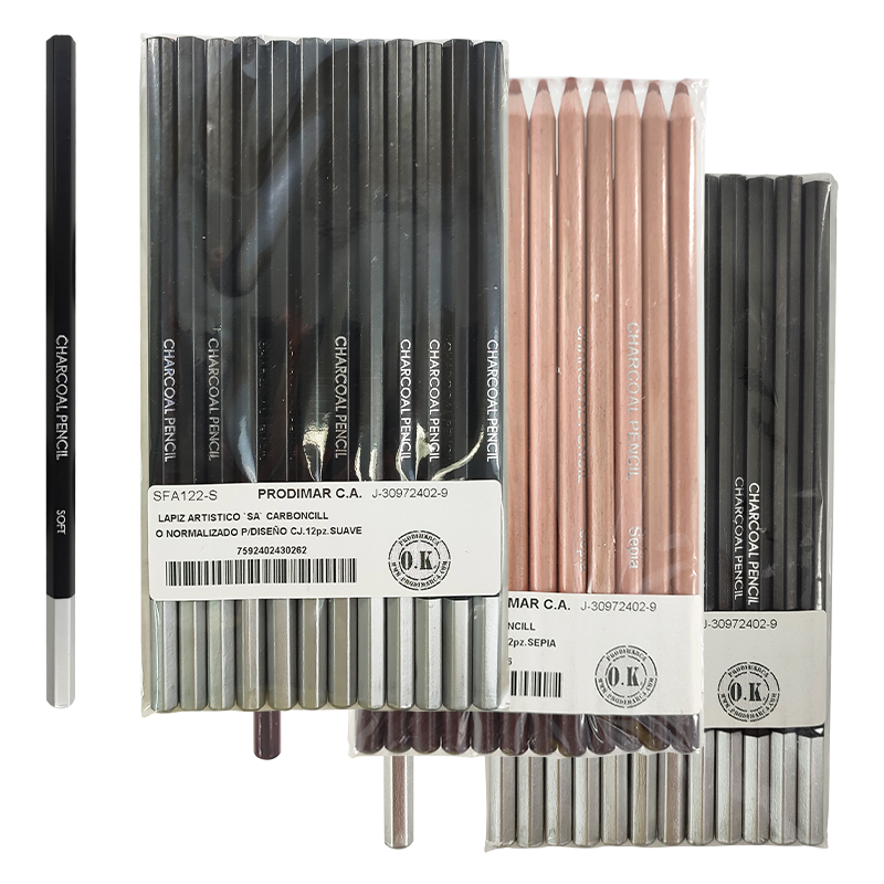 LAPIZ ARTISTICO `SA` CARBONCILLO TONALIZADO P/DISEÑO CJ.12pz.SEPIA