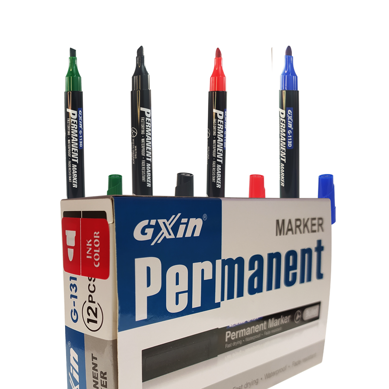 MARCADOR PERMANENTE `GX` GRUESO PUNTA CINCEL CJ.12pz.xGAMA 4 COL.