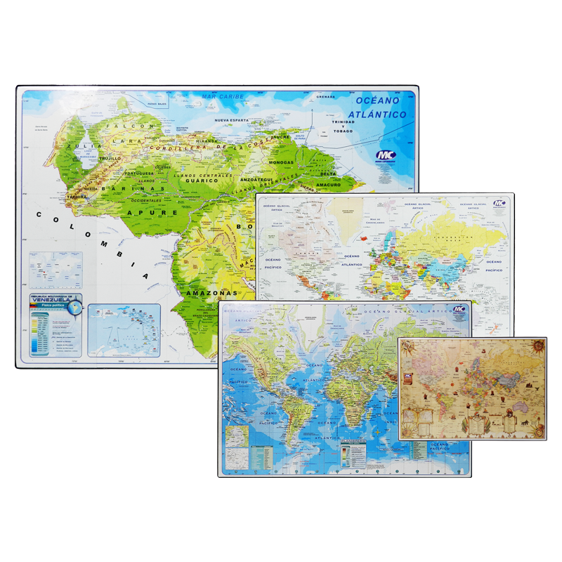 CARPETA-PAD P/ESCRITORIO `MC` PQ.1pz.51x35cm.MAPAMUNDI FISICO/POLITICO