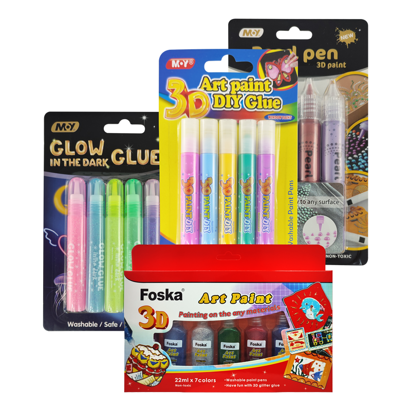 PEGA DECORATIVA C/GLITER FK POLIVINILICA BL.7pz.x22cc.C/U.COLORES METALIC SURT.