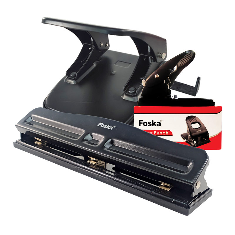PERFORADORA P/OFICINA `FK` 7/8CM.20 HOJAS.AJUSTABLE METALICA PINTADA NEGRO MATE