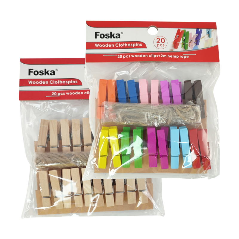 PINZAS P/GUINDAR ROPA "FK" MADERA DE ABEDUL COLOR.BL.20PZ.C/CUERDA DE CAÑAMO DE 2M.