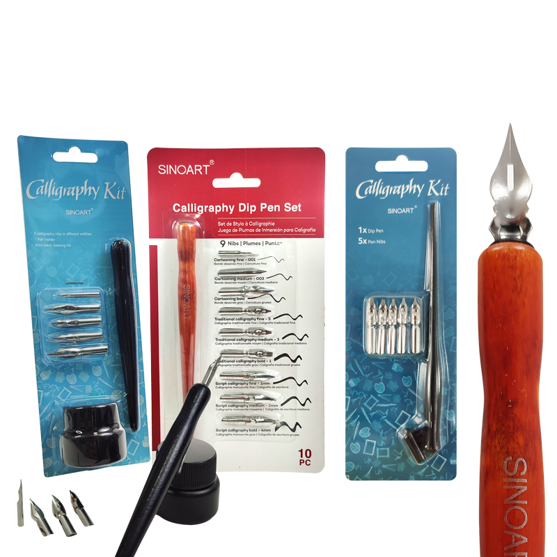 PLUMILLA P/ESCRITURA/DISEÑO/CALIGRAFIA SA ST.7pz.MANGO+5 DIFERENTES PLUMILLA+TINTA